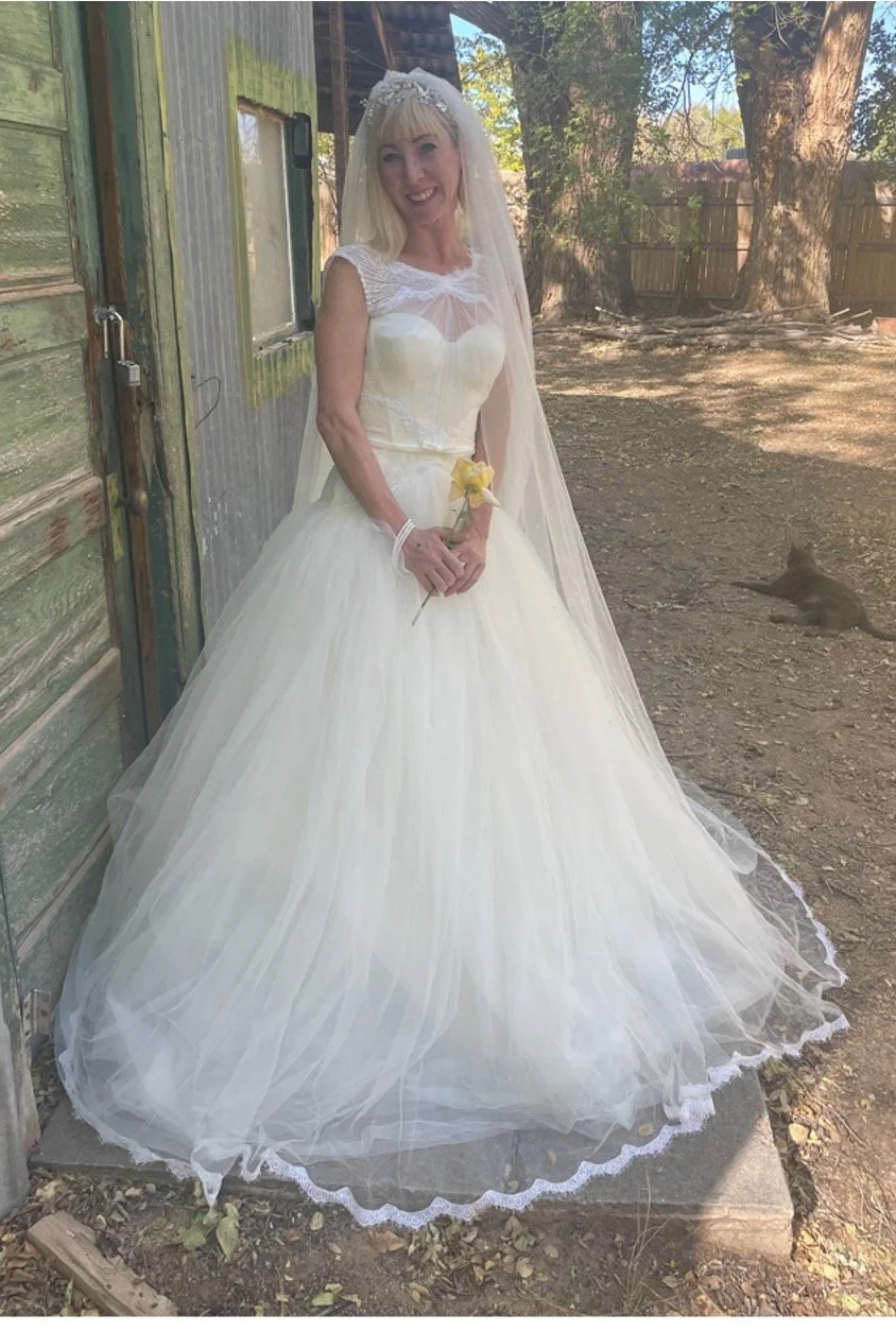 Desert Flower Bridal Boutique is an Albuquerque-based haven for pre-loved and off-the-rack wedding gowns. Founded with a heartfelt and sustainable mission, the boutique is where the magic of cherished wedding dresses continues its journey. Browse a selection of my gowns at a bridal expo or book an appointment to visit me at my home studio, where I curate an intimate experience connecting past brides with future ones and guiding you with warmth and expertise. At Desert Flower, every gown tells a story, and I am delighted to help create yours.